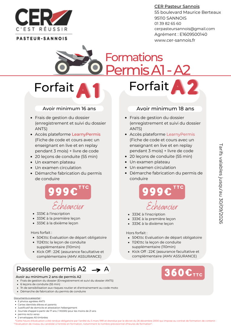 Les autres conditions pour rejoindre une autoécole pour permis A1 et A2 concernent la possession de l'ASR ou de l'ASSR, mais aussi le fait d'avoir la nationalité française ou un titre de séjour en cours de validité sur le territoire français.